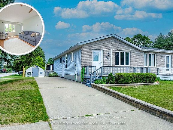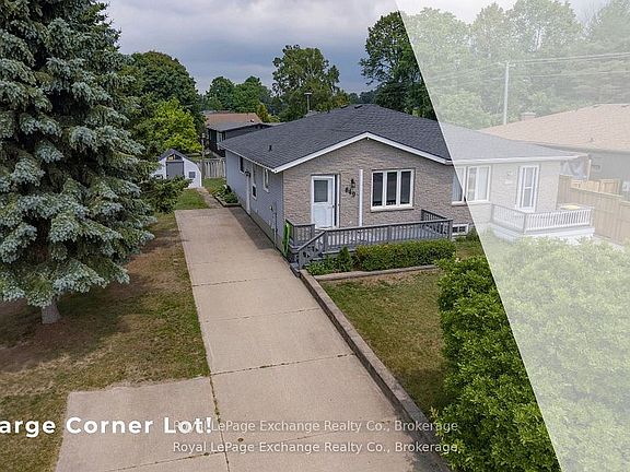 Don't miss out on this amazing opportunity! This immaculately maintained semi-detached home boasts a spacious 1,900 sq. ft. of living space spread over two levels, making it an ideal option for first-time buyers, retirees, or as an income property. Located just a short stroll away from Walmart, the new LCBO, and a host of other local amenities, this property is perfectly situated. The home sits on a generous corner lot, providing an expansive double-wide concrete laneway, ample green space, and both front and back decks. Step inside the front door to discover a practical layout on the main floor, featuring a bright and airy living room, a sleek and tidy galley kitchen complete with a coffee bar for storage, two bedrooms, and a four-piece bathroom. The finished lower level offers endless possibilities, currently consisting of a spacious rec room, a third bedroom, a three-piece bathroom, laundry facilities, and additional storage. With a separate entrance, this lower level could easily be converted into a separate unit, thanks to the R2 zoning. The home features a combination of ductless heating and cooling, a natural gas fireplace, and baseboard heating, with a new roof installed in 2018. The sand-point well system ensures that the lawn is always looking its best, while the detached shed offers additional storage space. This turn-key home is the one you've been waiting for!