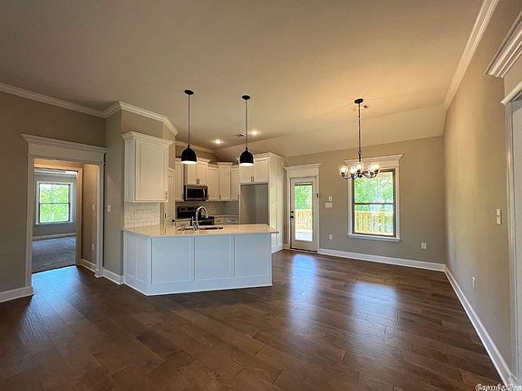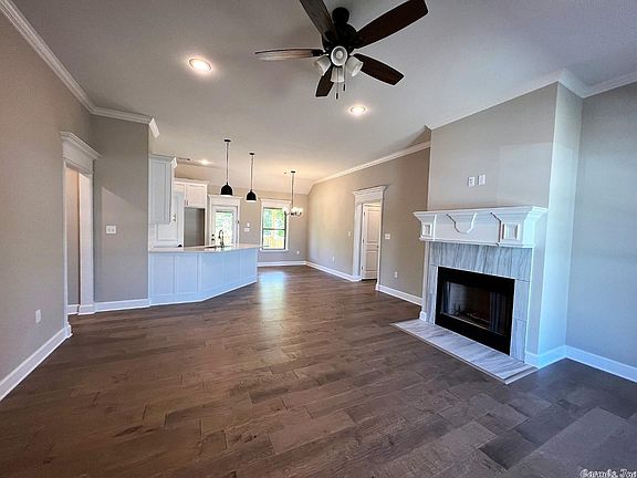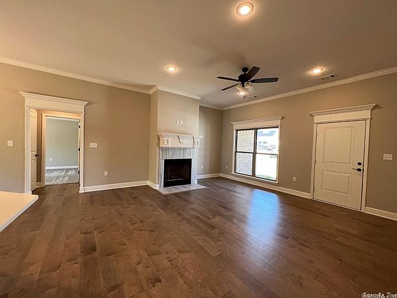 New Construction in Pinewood Estates. Living area has 10' ceiling , wood burning fireplace & is open to kitchen & dining. Kitchen has custom cabinets w/ez-close drawers, granite counter-tops & s/s appliances. Crown molding in all rooms. Hardwood floors in LR, kitchen, dining, & hall. Ceramic tile floors in baths & laundry. Primary BR has tray ceiling. Primary bath has sep. shower, soaker tub, & large closets. Laundry room w/storage. Approx 0.78 acre lot. Possible storage in Crawl space. Bryant Schools. AGENTS SEE REMARKS!