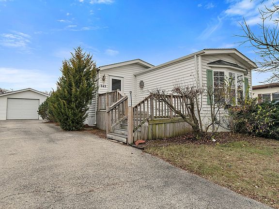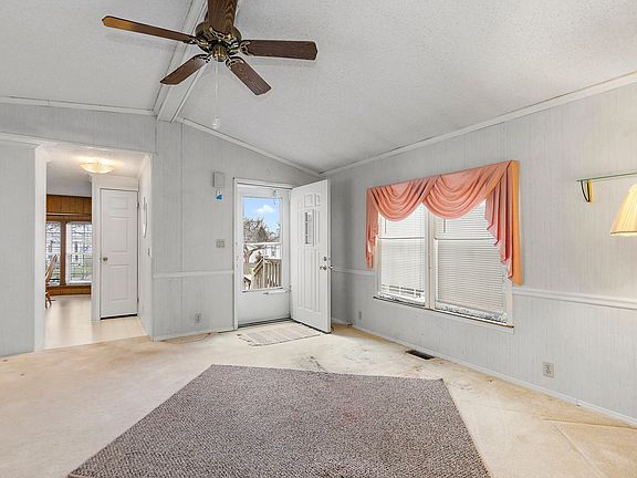 Desirable 1296 sqft Home in Indian Trails 55+ Community! This charming 2-bedroom, 2-bathroom home with a bonus room offers plenty of space and comfort. Enjoy a large kitchen with a buffet area, excess storage, and a bay window. The living room features cathedral ceilings, creating a spacious and inviting atmosphere. A quaint office/den with white French doors and a large master bedroom that offers a private bathroom. The rear deck leads to a large detached garage with ample storage. Updates include a new furnace (2022), recently serviced AC (9/2024), and wood deck (2017). The roof, replaced in 2009. Please note, half of the stove top and the dishwasher aren't working. The home is being sold as is. Prospective buyers must qualify as a resident through the Indian Trails office after accepted contract. Don't miss out-schedule your tour today!