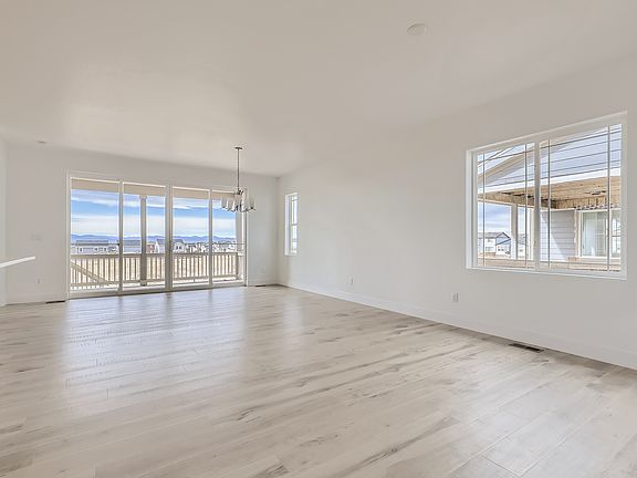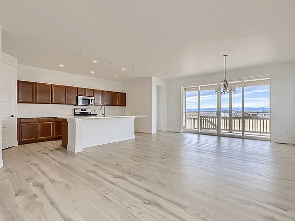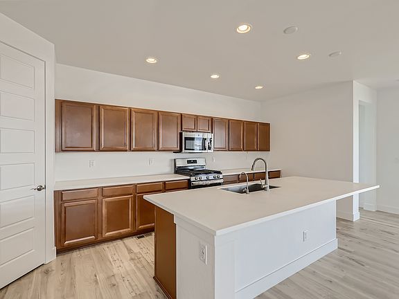 Great ranch home in the Sky Ranch neighborhood available for move-in approximately in November. Featuring a beautiful open concept layout with extensive laminate flooring throughout the main floor and tile floors in the bathrooms. The large kitchen features a center island that is perfect for entertaining with beautiful linen cognac stained cabinets, white corian counter tops and stainless steel appliances including a gas range. Enjoy the backyard which, backs to open space with a full sized covered patio, 12' x 8' double sliding glass doors and completely landscaped front and backyard with fencing. (Photos are an example from a previously finished Crestone home). *This home is under construction and the photos shown are representative photos only and are meant to show floorplan and layout only. Interior and exterior are subject to change upon completion. Please speak with a Community Sales Manager for more details.