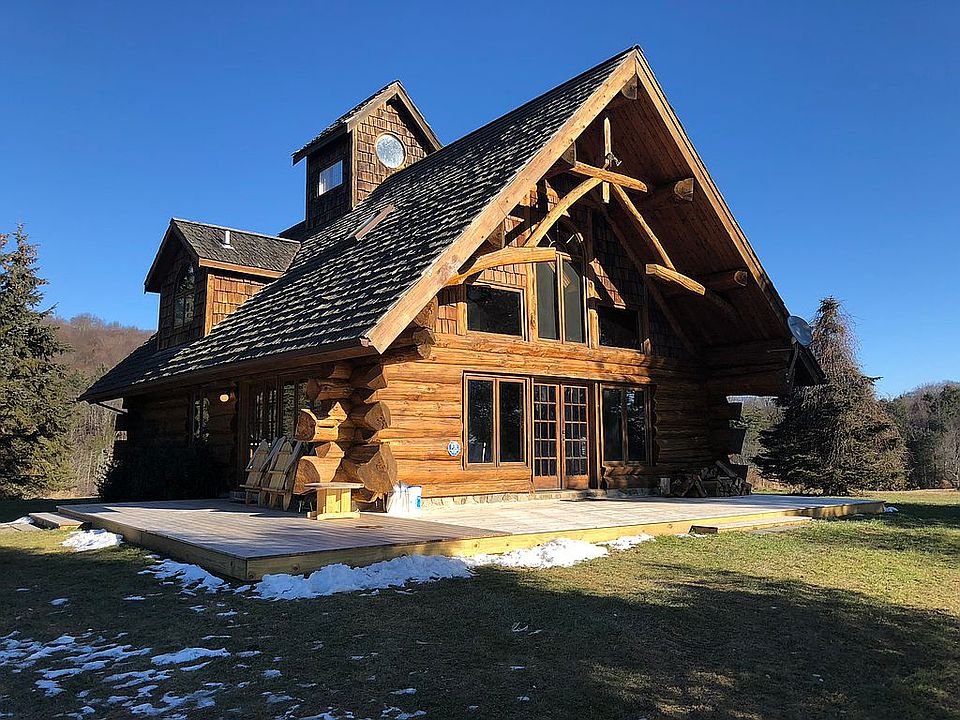 Deluxe log cabin with soaring ceilings and nearly 44 secluded acres of Catskills farmland.