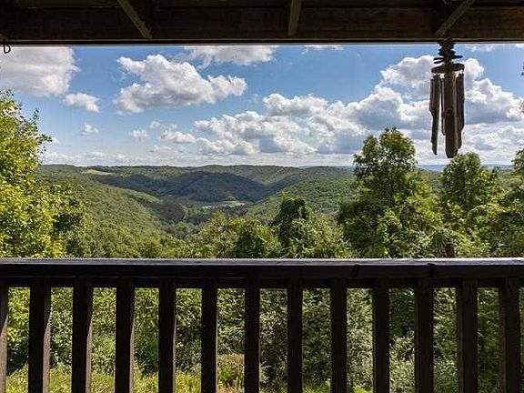 The quintessence of life on "top" of Centre County! Ranch home with completely finished walk-out basement on 118.84 acres hidden away at end of a well maintained 1-mile gravel road off Rt 144, that everyone who visits calls "PARADISE!" Gorgeous mountain range views from your 10' x 24' covered deck. Swing, sit & look with awe at the gorgeous rainbows, storms, sunrises, sunsets from top deck or from back 18' x 25' cement covered porch to breath in the constant beauty across Governor's Road mountain ranges. This primary residence has all the amenities of city living but all the opportunities of 4-seasons of outdoor bliss one step outside your door. Home has preserved the log exterior view and inside it welcomes you to experience what cozy feels like! Open main floor living w/kitchen, dining, living all designed to enjoy the setting from "up top!" Birch cabinetry throughout, pantry/laundry/mudroom so practically placed and clean! Also, on the main floor is owner's suite and sliding glass doors to porch w/swing and therapeutic views all day long. Lower level has sliding door egress to covered patio, 2 bedrooms, full bath, wood stove in living room, plus extended sitting area. Approx .18 acres of tillable/hay fields. Farm is so inviting you will never want to leave! Noise will be nature's megaphone calling you to serenity and tranquility. Outstanding yet rare opportunity, so call NOW!