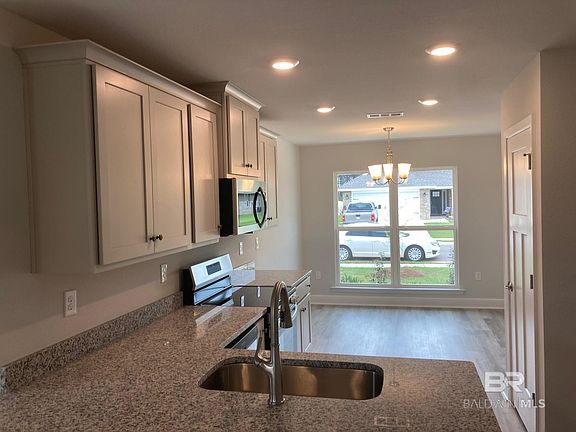 Gold Fortified Home Beautiful Beaches are in your near future! Just 20 minutes to the beaches. This home is located in the center of Foley, with shopping, entertainment, and easy 2-minute access to the beach express or Hwy 59. This is a 4-sided beautiful brick 3 Bedroom 2 Bath home with a split floor plan featuring a airy ceiling Family room with access door to the covered back porch. The Kitchen is open to the dining room and has granite countertops throughout the home, and stainless appliances. This stunning primary bedroom has a en suite Primary bath with walk in closet. Luxury EVP flooring throughout with carpet in the bedrooms. Spacious 2-car garage. The seller also provides Termite protection with a renewable bond. Premium hurricane fabric shields. High efficiency e-windows . Buyer to verify all information during due diligence. Directions From Hwy 59, turn east on County Rd 20, turn north onto South Juniper Street, turn right onto Mayflower Drive, left onto Plymouth Please note, contracts are written on Adams Homes' forms and require a pre-approval letter and $1000 in earnest money payable to Adams Homes. Model open daily: Sunday - Tuesday 12 p.m. - 6:00 p.m. , Wednesday - Friday 11 a.m. - 6 p.m. Saturday 10 am - 6 pm. USDA eligible. Builder reserves the right to modify the interior and exterior design, specifications, locations, sizes, design features and prices of the homes. Modifications may vary by home and are subject to change without notice. All dimensions are approximate and can vary. Photos, finishes and colors shown are approximate representations