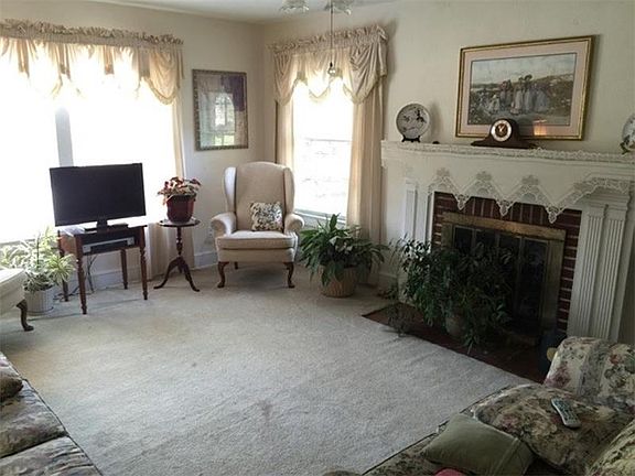 Charming 4 side brick city cottage! Corner lot. 2 bedroom/ 1 bath with formal living room, dining room, den, laundry room and possibly a 3rd bedroom, nursery or office. 2 car detached garage with extra storage and large rocking chair front porch. 1 month old HVAC system.