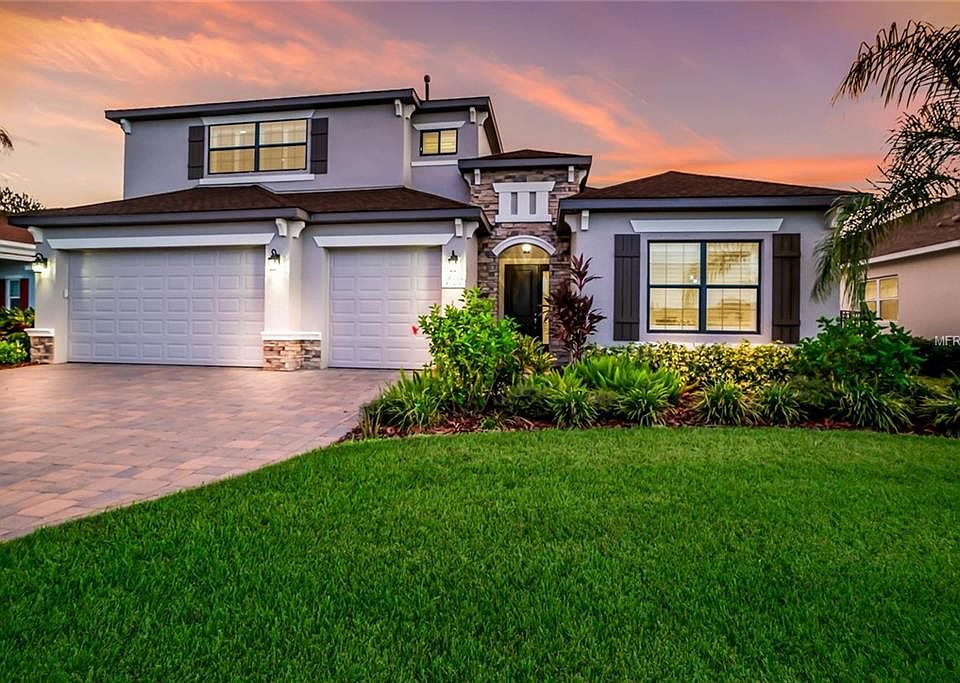 Located amid sought-after Greyhawk Landing, this beautiful like-new four-bedroom and four full-bath home presents a perfect balance of form and function with expansive lake and preserve views. The more than 3,200 sq. ft. of living area offers an open floor plan with distinct touches for comfortable ease of indoor/outdoor living. A brick paver drive leads to the inviting entry and foyer with 9'4" ceilings. The great room, with vaulted ceilings and an impressive floor-to-ceiling stone fireplace, flows between the formal dining room and kitchen, connecting to the large lanai with grand appeal. The well-appointed kitchen is complete with GE stainless steel appliances, granite counters, and center island. The master suite is located on the first floor with two walk-in closets, access to the pool terrace, and a spacious master bath. Upstairs, an oversized bonus room boasts a fourth full bath. Plantation shutters adorn the storm-rated insulated low-E windows. Step outside and you'll find the refreshing pebble tec saltwater pool with a picture screen lanai cage that shows off the view. A three-car garage completes the picture. This gated community offers club houses, resort-style pools, tennis courts, fitness center, soccer and baseball fields, and extensive walking paths and biking trails. Greyhawk Landing is near world-class shopping and dining, several area hospitals, SRQ and TPA airports. The renowned white-sand beaches of Florida's Gulf Coast are only a short drive away.