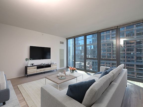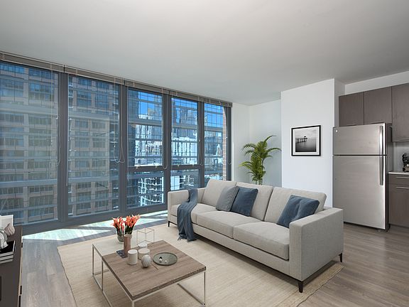Luxury River North living features open floor plans with floor-to-ceiling windows with breathtaking views of the Chicago skyline. Enjoy amazing entertainment spaces and amazing amenities outside your home. Located amidst a trend-setting neighborhood these River North apartments are sure to offer something for everyone. In-Unit Finishes: Private Balconies, Keyless Entry, Driftwood Plank Flooring Throughout, Dark Wood Cabinets, SS Appliances, Quartz Kitchen Countertops, Sink Disposal, Subway Tiled Backsplash, In-Unit Washer & Dryer, Baths include subway tiled bath surround, select units include double bowl vanities. 24 hour door staff, pet friendly owner's lounge, and covered dog run, smoke free, On-site resident garage with charging stations, bike room, package/receiving room w/ 24 hour notification, dry cleaning, onsite 24 hour maintenance. Unfurnished 12 month lease