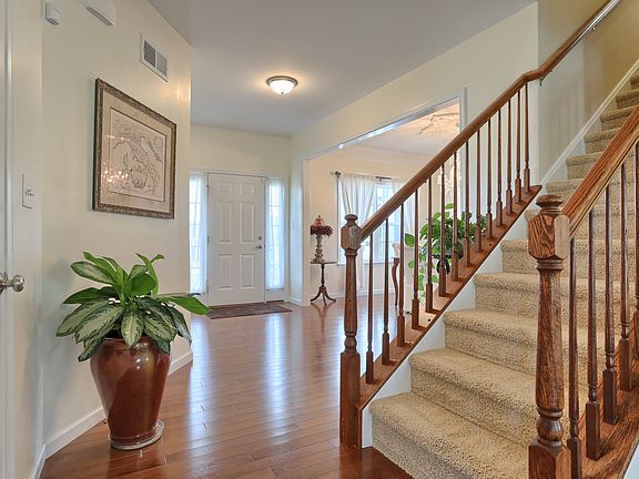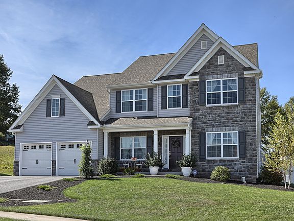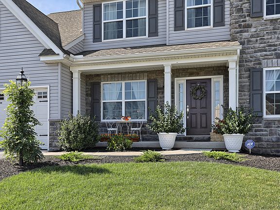 This 3500 square foot ~Ethan~ model in desirable Carriage Park neighborhood (Palmyra Schools) is sure to impress!~~Built in 2014, this home is situated on a .8 acre lot with a white picket fenced-in yard, stamped concrete patio, and custom built storage shed with decorative cupola. Inside the main level features an open floorpan with 3/4 inch solid oak flooring throughout the family room, kitchen, formal dining, mud room and 1/2 bath. The main level also includes a large office with carpet. Upgrades include a gas fireplace, 10 1/2 foot kitchen island, granite counters, and stainless steel appliances that include a brand new GE Profile dishwasher. Upstairs offers 4 large bedrooms - all with walk-in closets, laundry, and two full baths.~~The incredible master suite offers the upgraded ~Venetian~ bath with walk-in shower and tons of closet space.~~Must see to appreciate the quality of this home!~