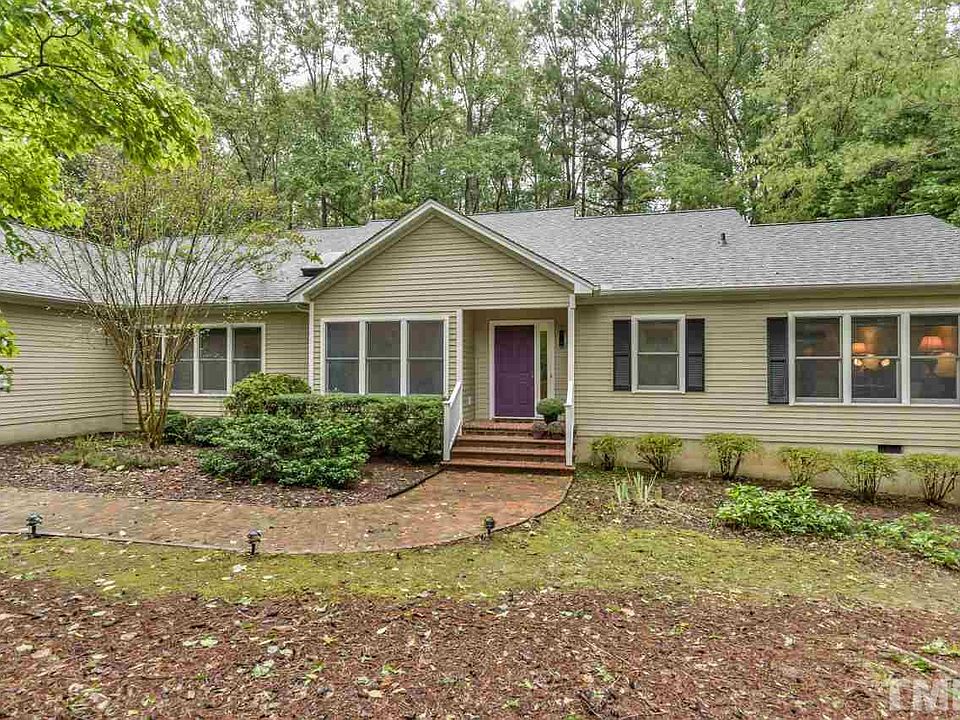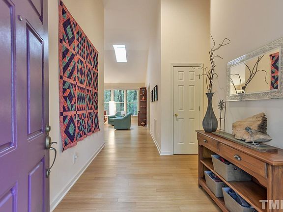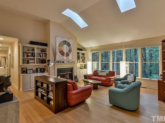 Enjoy Fearrington Village life! This one level home is easy to maintain inside and out. Bamboo floors, skylights, loads of tall windows and cathedral smooth ceilings all create a contemporary feel. Lovely wood island in the kitchen with room for a table, walk in pantry and even 2 cooks! The split bedroom floorplan offers privacy to everyone. 2 car garage with direct kitchen access. At nearly an acre, feels private but is a short drive to local universities, cultural events and RDU International Airport.