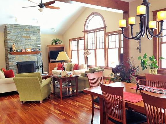 Riverfront Living at its best! This 2010, light filled home was thoughtfully designed to access views of the Connecticut River and surrounding hills from every living space! Meticulous attention to detail and craftsmanship is evident throughout with top priority being comfort,and ease of living. There is space for everyone, including a private first floor master suite, lower level rooms for family and guests and a separate office with River views as well.The heart of the home boasts a nicely appointed kitchen that opens to a spacious dining, living area with vaulted ceilings and a dramatic stone fireplace.Two separate porches lead you to lovely yard with a stone patio that open up to 200 ft. of River frontage. A stairway leads you.to your own private dock. Hop on your boat or kayak and enjoy all the river has to offer! Located just off the Village, the site is private yet surprisingly convenient with easy access to I91. Come take a look , you will never want to leave!