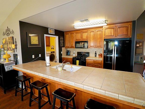 Beautiful turn key ready four bedroom two bath home in desirable North Meadows! This home shows like a model! Nice open floor plan. Wood look tile and custom paint throughout. Carpet in the bedrooms. Hard wired alarm system, surround sound speakers in the living room and garage. Custom cabinets and built in tv in the garage, also a covered patio! It's a must see!