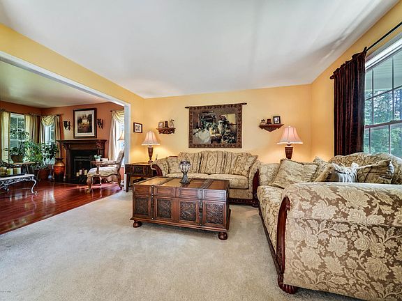 Tucked Back Amongst Trees you will find your Dream ''Rocking Chair'' Front Porch Style Colonial!*Part of the Country Woods Estates Development!This is a TRUE 5 BEDROOM AND 3 FULL BATH home!*Lower Level Bedroom and Bath is Perfect for a 1st Floor In Law Scenario or the Perfect Office Space!*2 Story Entry Foyer*Crescent Window*Formal Dining Room*Formal Living Room*Expansive Center Island Kitchen with Plenty of Cabinets*Full Appliance Package and Breakfast Area*Gleaming Wood Laminate throughout Kitchen and Family Room*F/R features WB Fireplace w/ Custom Mantle*MBR Suite w/ Private Bath including Soaking Tub-Stall Shower & Dual Vanities*Walk In Closet in MBR*3 Add'l Spacious Bedrooms Upstairs*2 Car Garage*Asphalt Driveway*PUBLIC WATER*Full Basement w/ HIGH Ceilings*Sliders to Yard for Outdoor