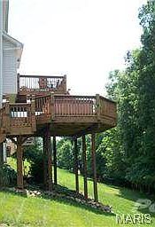 One of the few 1.5 stories presently on the market in the Legends! Move in ready home features two tier decking, hot tub, cathedral ceiling in great room with wall of windows facing the wooded common ground at the rear of the home and window treatments that can be operated by remote control. Separate dining and breakfast room, master bedroom suite with bay windows. Master bath includes two separate single bowl vanities, corner tub and separate shower. Choose between the main floor laundry area or the utility - sewing/laundry room in the lower level. Open stairwell overlooking the great room leads to three nice sized bedrooms and full bath in the upper level. Additional features include the tasteful interior decor and landscaped lawn, wood burning fireplace, walk-out lower level with finished rec/family room, work-out room, storage room and laundry/sewing room, & 3/4 bath. Invisible fence & Home Warranty Included. Brokered And Advertised By: Coldwell Banker Premier Group Listing Agent: John Heger