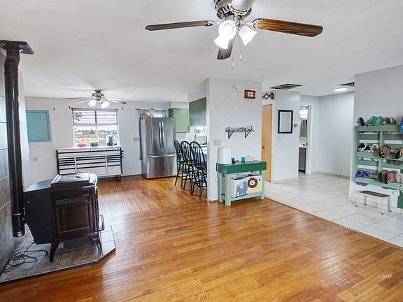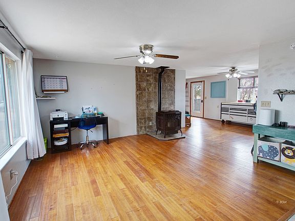 Explore this exceptional residence boasting a spacious detached workshop, four bedrooms, two bathrooms, and a versatile fifth room ideal for a home office or additional storage. Situated on over two acres of fully fenced land this property features comprehensive irrigation and the septic system is on risers. The interior showcases fresh paint, a pellet stove, and a newer metal roof all complemented by numerous upgrades throughout the home.