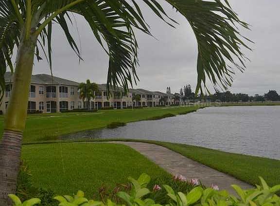 Exceptional lakefront unit with many upgrades such as crown molding, granite kitchen counters, raised panel cabinets, walk in closets, textured floor tiles, custom window treatments, etc. Homeowners association does the ground maintenance, pest control, water/sewer, cable, as well as the included community features and amenities such as a heated pool. Conveniently located on the ground floor with a lake view, and included is an attached 1 car garage and extra storage room. As you enter, you are immediately greeted into a warm, open, and spacious environment. The eat-in kitchen has room for a dining table to host evening dinners for family and friends and also has a breakfast bar to carry on casual conversations with ease while preparing your meal. From the kitchen, the living space opens up to your expansive living room, perfect for entertaining. From the living room, you will find sliding glass doors that not only lead you to your screened lanai that overlooks the lake, but also welcomes an abundance of natural light into the condo. Enjoy the peaceful serenity of sitting on your private lanai with your favorite iced beverage during sunset as the birds fly freely over the lake. The spacious master bedroom has its own private entry door to the lanai and master bathroom. In the master bathroom, you will find convenient dual sinks and ample closet space. This active community is close beaches, shopping, dining, parks, hospital. Being sold as is.