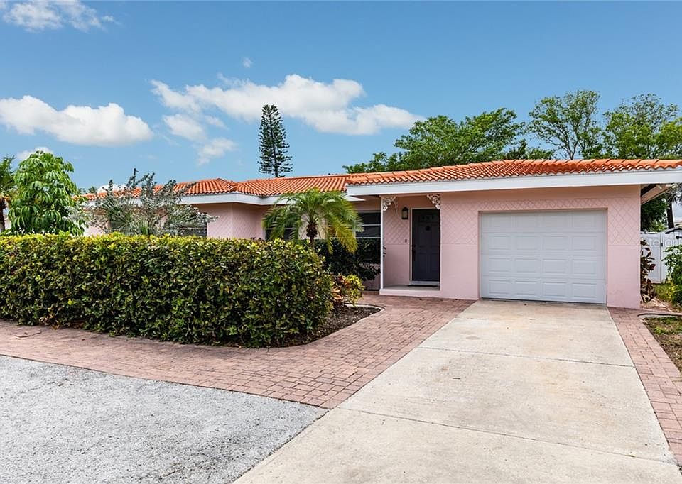 ~LIFE IS SHORT~BUY THE BEACH HOUSE~ Located steps from the beach, yet still tucked away on a quiet one way street off of St Pete Beach - you can have both easy access to popular restaurants as well as a short walk to the Sand. This single-story block construction home has a 2007 Barrel tile roof and sits on a 70x100 foot lot with room to park your boat & still have ample guest parking. Light & Bright, you will enter into an open floor plan with a separate dining area and large living area with a painted brick accent wall. The Large Master bedroom has 2 closets and an en-suite bathroom. The second bedroom is also very large with ample closet space. Enjoy sitting out on the enclosed private rear patio that overlooks your low maintenance yard ( no mowing required!) & there is ample room to add a pool should you wish. There is an oversized attached garage with Washer & Dryer, HVAC is 2012, Duct work replaced in 2019, Electric Panel 2012 and Freshly painted. This lovely home has just been professionally cleaned and is Vacant for your showing convenience. FLOOD insurance for 2020 $1184.00 Don't miss this adorable Pink Paradise!