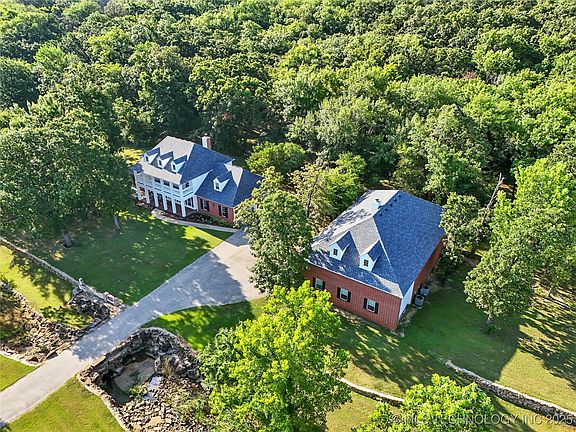 A rare opportunity to purchase two houses for the price of one! This property is a unique blend of estate, ranch, and retreat—all just 10 minutes from the Creek Turnpike and Hwy 75. This magnificent property with mature trees and a truly magical setting. NO HOA. Two separate structures plus additional lot that offers privacy or room to expand, cumulatively 3.11 acres. Main home a newer full-brick home with fresh paint, updated countertops, and a flexible layout for every stage of life. A brand-new 2025 roof covers both the main home and the additional living quarters. Car lovers and RV owners will appreciate the 5.5-car garage capacity, including a drive-thru bay with 13’ door, hookups, and space for a 38+ foot RV or boat. The separate full-brick guest house (built 2011) features a discreetly ADA-compliant primary suite on the first floor, full kitchen, laundry, and half bath. Whether you need room to store, build, or gather, this property offers space, privacy, and possibilities for your next chapter. Ideal for multi-generational living or potential income from rental property.