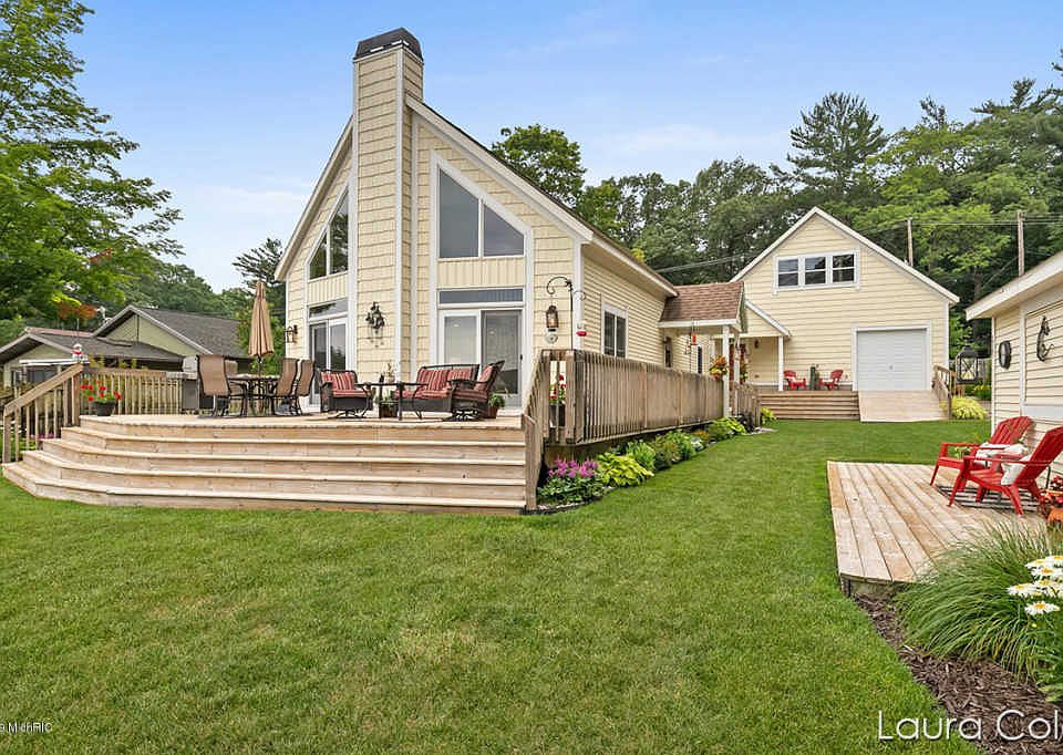 PRIME WATERFRONT LOCATION!! Situated on 75 ft of all sports Middle Lake frontage, this home features a private guest house, 3.5 stall garage, an outbuilding that could be a fantastic tiki bar or shed, professional landscaping, bamboo flooring, granite counter tops. With the open floor plan, you can enjoy cooking and entertaining while looking out over the lake. Main level has 2 bedrooms and 1 full bath. The Master suite is upstairs with a full bathroom including a steam shower. The garage islarge enough to hold 3 cars and all your lake accessories and toys. Above the garage is the private guest suite with a separate entrance. Your guests can relax in their own living room, kitchen, bedroom and full bath. Welcome home!