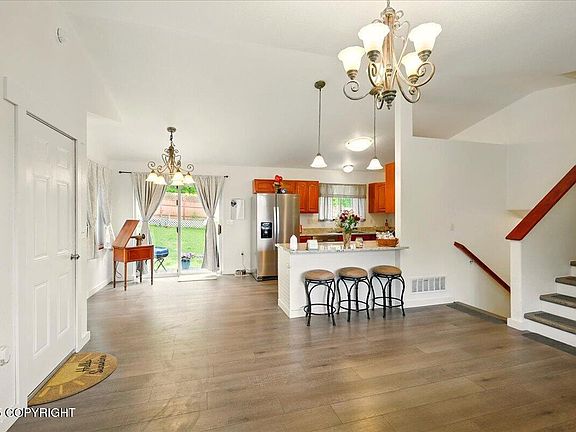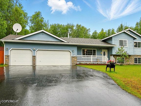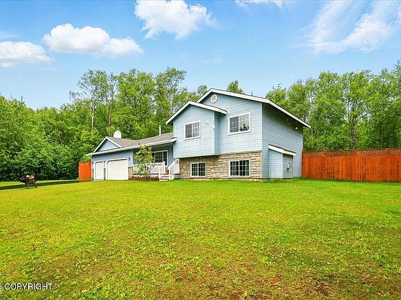 This Beautiful Palmer home with 4 BR, 3 BA, 3 Car Garage has been recently renovated & is move in ready! New interior paint, new LVP flooring, new appliances including fridge & W/D, New granite counters in kitchen, solid wood cabinets recently re-stained, new fireplace tile, and new interior doors. Don't miss the remodeled bathrooms with new floors, vanities and light fixtures.Don't miss the fully fenced backyard on this .97 Acre lot which includes a back deck, raspberries, garden beds, and a hot tub.