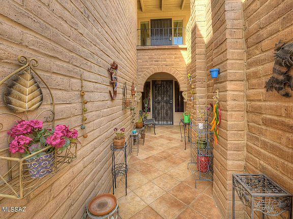True Tucson charm. This adobe home has lots of the Tucson character that everyone associates with. Located in the prestigious gated community of Skyline Country Club, this condo exudes old Tucson charm. Though not right on the golf course, this lovely home has golf course views as well as mountain views. Front entrance is gated and tiled up to front door that leads into a very spacious living and dining area. Entertain by the wet bar and sit by the see-thru fireplace. Then walk out on to the terrace where you can entertain with ease while you gaze upon the Catalina mountain views. Kitchen is a generous size with a breakfast nook for morning coffee.