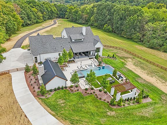 Ever wish you could give your family room to spread out, space for the kids to run barefoot, get dirty, and play outside like childhood’s meant to be, without giving up quick access to the city? This property makes that dream real...Tucked on 24 private acres, this modern farmhouse feels worlds away from the bustle, yet you’re just minutes to Franklin, Nashville and BNA. It’s the kind of place where you can sip coffee on the porch in peace, then still make it downtown in no time. Inside, the home is every bit as impressive as the land: 5 en suite bedrooms plus a powder room, a chef’s kitchen with scullery, and a main-floor primary suite designed like a private spa. Two laundry rooms and a secure safe room add ease and peace of mind. Step outside, and it’s like your own resort. Infinity pool, spa, fire bowls, fountains, and a pool house built for gathering with friends and family. The modern barn is ready for whatever your lifestyle calls for, whether that’s cars, animals, or turning it into the ultimate creative space.