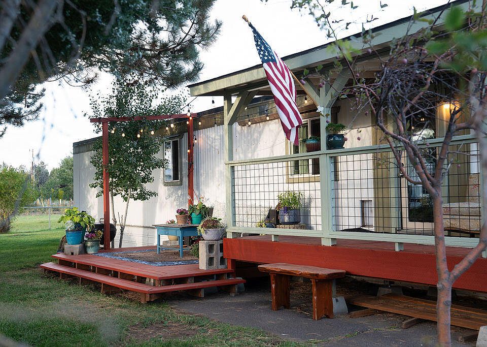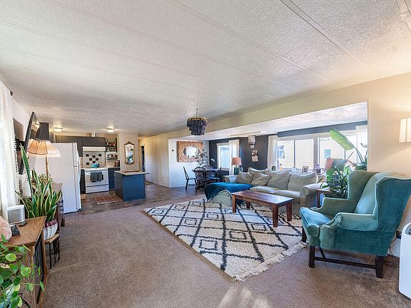 Welcome to this charming, well-maintained manufactured home tucked away in a peaceful park community. Situated on a corner lot that faces a pasture with only one neighboring lot, this single-wide has kickouts, providing a bright, open-concept floor plan that's perfect for relaxing or entertaining. The kitchen layout is functional with ample counter space and storage. The two bedrooms are at opposing ends of the home, offering desirable separation—ideal for a small family, guests, or a home office. Other features include indoor laundry hookups, a portable A/C, and built-in storage in one bedroom. Outside, you will find a beautiful new deck at the front porch, established landscaping, and a fenced yard—perfect for quiet mornings with coffee, evenings under the stars, and plenty of room for pets or a garden. Plus, enjoy convenient access to Tumalo and the 97!