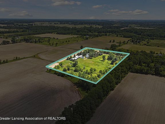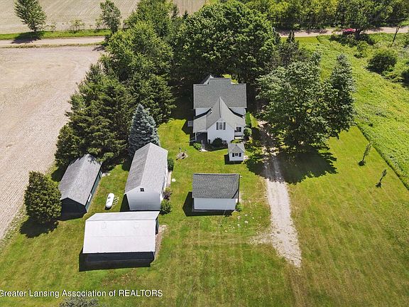 Excellent opportunity on 8.3 beautiful country acres. This would make an IDEAL HOBBY FARM OR FOR A SMALL BUSINESS OPERATION. Tons of privacy and seclusion, surrounded by farmland, yet close and convenient to Grand Ledge, Charlotte or Potterville. Several WELL-MAINTAINED OUTBUILDINGS most with new roofs in the last 10 years. Excellent for storage, or animals. Garage, a 48*42 pole barn, 32*16 2-story grainery currently used as a recreational and storage building. LL 19*15.4 SF, elec, and windows. 2 additional outbuildings. Home features 2008 SF, 3 bedrooms, 1.5 baths. Spacious kitchen, large dining area, living room and primary bedroom on the 1st floor. Upper level has 3 additional bedrooms and a ½ bath. Several enclosed or covered porches. Updates: Roof 2016, Furnace 2014, HWH 2014 + more
