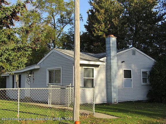Three bedroom, one bath house with large living room, eat in kitchen, laminate flooring, laundry room, detached garage in nice back yard, fenced front yard. Views of lake make this one worth putting some TLC into it!