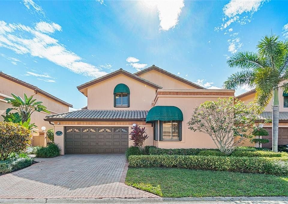 This home is a standout! Updated, open & bright home with a fabulous lanai, pool area with lake view, & a beautifully landscaped courtyard entrance! Interior pics will be added soon! The living area has high ceilings & is full of natural light. Large primary bedroom suite on the 1st floor & two spacious bedrooms, a Jack-and-Jill bath, plus a loft area upstairs. The updates include wood-look ceramic tile throughout the 1st floor, crown molding, updated kitchen, updated primary bath, newer a/c units & water heater, many impact windows & doors, an upgraded alarm system, smooth ceilings, an awesome neutral interior paint & more! Boca Pointe is gated & in a great central location. Walk to shops, restaurants, & houses of worship. Excellent schools! Club membership is not required.