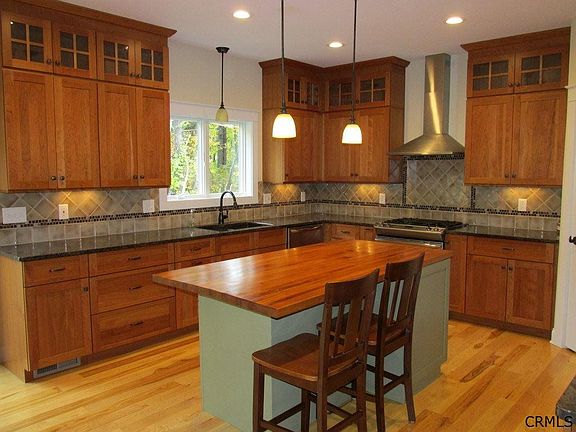 Don't miss this custom home on 2 acres in Guilderland. Bright and open.Kitchen features cherry cabinets with soft close doors/drawers, granite counters, exterior vented range hood, stainless appliances. Hardi-board siding, 4" Hickory floors on 1st floor, 4" Oak on 2nd floor, wrought iron spindles, solid doors, oil-rubbed bronze hardware, custom trim and crown molding, bedrooms have walk-in closets. Granite counters in baths. Laundry room has work sink and handy shower. Dog run and swing set included.