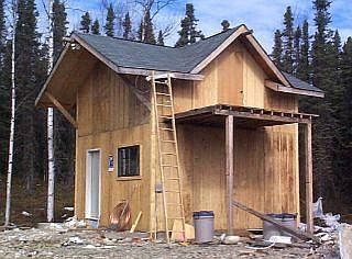 Chalet under construction. Will be sheetrocked, have new roof, bath completed, kitchen sink & ladder to loft sleeping area. Water fee $35/mo. 10x10 deck off bedroom is above carport. 15%-20% dn, 10% int, nego yrs.