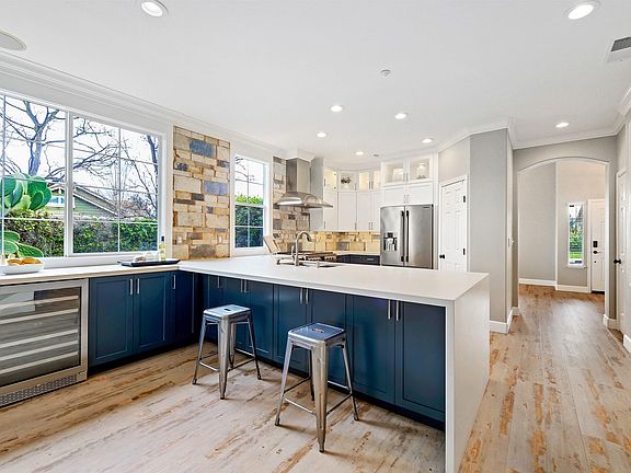 COMPLETELY REMODELED NEWER ONE STORY! From the moment you arrive you will appreciate the large corner lot with meticulously maintained landscaping and fresh exterior paint. As you open the SOUTH facing front door you will see the luxuriously upgraded interior with wide plank LVP flooring throughout, two tone neutral paint, new lighting, crown molding, wood detail work, stone accent wall, custom cabinetry and modern linear fireplace. Spacious chef style kitchen with all new solid wood cabinets, quartz counters with waterfall edge, high end stainless appliances and gas range, abundant counter seating and large pantry. Fully remodeled baths with stunning tile work, bronze hardware and solid surface counters. Large outdoor living space with built-in BBQ, storage, bar seating and rain sensing overhang, new spa, fan and lighting. All appliances, backyard furniture and spa included! Water softener system and custom window coverings. Spacious floor plan with high ceilings, abundant storage and indoor laundry room. MUST SEE TO APPRECIATE!!