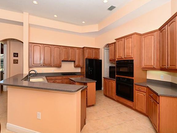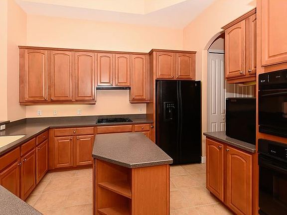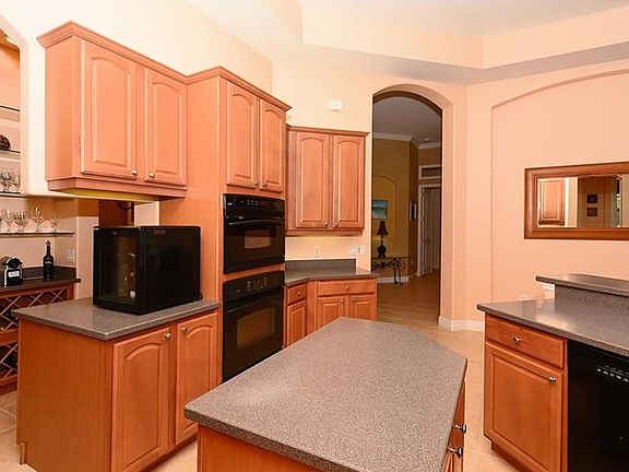 Welcome to this gorgeous home in the Trails of Greenbrook. This home offers lovely elevation, stone trim, double entry doors, a three-car garage and lush landscaping. Inside, there are four bedrooms and four baths, along with a large entry with tile flooring and a spacious living room with sliders and transom windows. Three stately columns separate the dining room from the entry. The gathering room offers a tray ceiling, two windows and sliders. The kitchen boasts rich custom cabinets, pantry, island, black appliances, double sink, wine bar area with glass shelves and a huge breakfast area with an aquarium glass window. The grand owner's retreat features laminate wood floors, a sitting area, sliders off to pool and an amazing bath with a vanity, garden tub and walk-in shower. Additional features include an office, plantations shutters, sizable secondary bedrooms and an upstairs bonus room or flex space with sliders and tiled patio overlooking a lake lot. Outside, there is a great covered area and awning on the lanai, an outdoor kitchen with a stainless steel grill, sink and refrigerator, a bar area for seating and an alluring pool and spa. This home is located near A-rated schools and close to ODA. Contact the listing agent