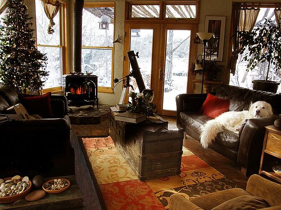 Our visitors literally exclaim when they get out of their cars. Granite stone walls rise up on the north side of the property creating a warm south face. The mountains are climbable, and we've built a small cabin up top that you can hike to. When it rains there are creeks and waterfalls everywhere. In the winter these are icicles and spectacular ice falls. In summer there are wildflowers, and ancient junipers, and bighorn sheep, deer, rich bird life, butterflies. Hand built main house, 1800 sq feet, with open beams, south facing windows for a bright warm winter, 3 bedrooms. Upstairs master bedroom is log walled, with its own full bath, which opens out to a private deck viewing spectacular mountains right there on the property. Very private setting. There is a gorgeous additional 900 sq foot finished workshop which has been used as a music recording and art studio. Out the back door is a 7 foot natural granite heart rock, which has a waterfall behind it when it rains. There are sheds for your animals, and one old barn with hayloft. Property is fenced for horses.