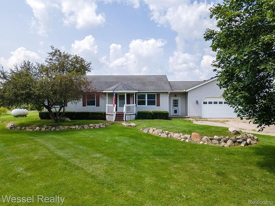 Charming ranch home located in Lenox Township and situated on a spacious 4.5-acre lot. Home offers 3 bedrooms and 2 full bathrooms, oversized 2.5-car garage, basement, and high-speed internet access. The property includes a 30x40 pole barn. Home showcases an inviting oak kitchen complete with a convenient breakfast bar and a tiled backsplash. The ample eating area is equipped with a ceiling fan and an Andersen sliding door that opens onto a deck with scenic country views. The living room has a large front yard facing window, laminate floors and an electric fireplace. The primary bedroom features an en-suite full bathroom. The extra tall basement, which has been partially built out, offers potential for customization. There’s an office area, a rec room, a laundry/utility room, along with a partially finished half bathroom. Pool table stays. Bilco door to basement for moving large items. The 16x8 mudroom between the house (is not included in square footage) and attached garage has the potential to be transformed into convenient first-floor laundry. Separate driveway to pole barn, barn has a nice setup for a horse, storage or workshop plus nice overhang on both sides. Lots of parking and storage! Pet containment system already installed. This remarkable residence stands out for its cleanliness and ample storage. Situated in an area with well-maintained homes, it offers a combination of comfort, convenience, and countryside allure. Richmond School District.