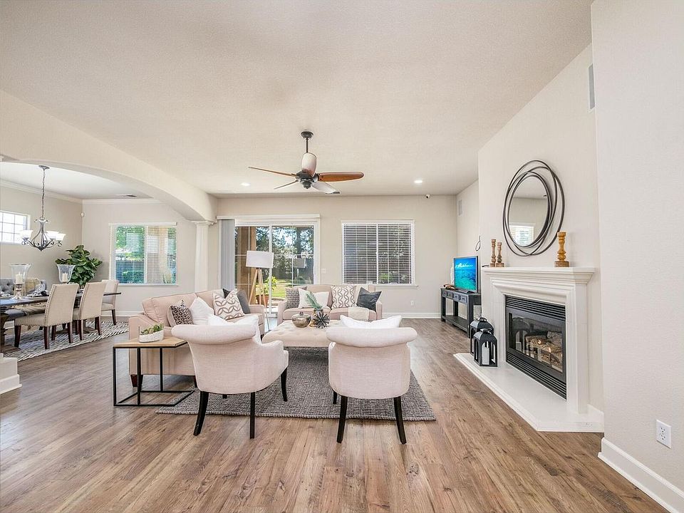 Set on a large 11,840 sqft lot in Crown Sierra Estates, this stunning residence features an abundance of upgrades and a massive park-like backyard with mature landscaping and firepit, ideal for entertaining. A circular foyer sets the tone upon entry where an abundance of windows and a nice blend of striking wood plank floors and custom inlay tile floors are complemented by a neutral color palette, crown moldings, and rich baseboards throughout the residence, creating a sophisticated yet causal living environment. The open and flowing floor plan is comprised of formal living and dining rooms, a library/ office, and a gourmet kitchen w/ granite counters, SS appliances, large pantry, and sunny eating area. Private master suite w/ sitting area, sliding glass door to patio, spa-like master bath w/ 2 separate vanities, oval tub, large shower with double shower heads, and spacious walk-in closet. 2 secondary bedrooms and bath and 3 car garage completes this gorgeous residence.