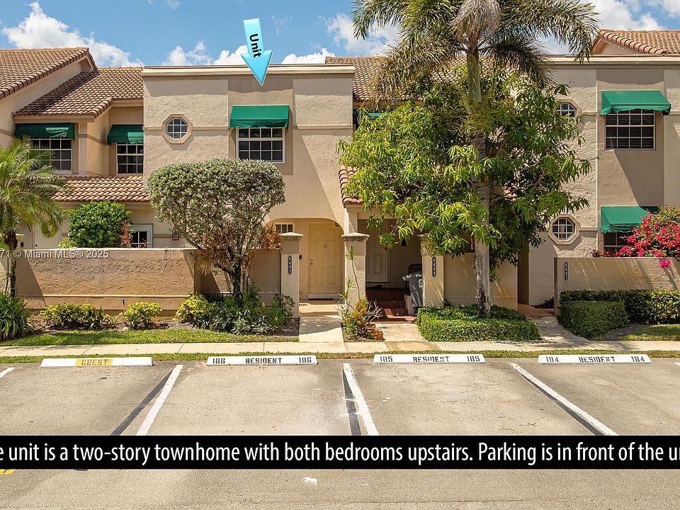 Completely updated 2 story townhome in gated and desirable Plum at Boca Pointe. Guard gated community. Convenient central location minutes from Town Center Mall, shopping, A-rated schools, houses of worship, I95, the Turnpike, the beach, downtown Boca, Deerfield Beach... Updated kitchen with stainless appliances, wood cabinetry and granite counters. Both bedrooms are upstairs with private bathrooms. Guest powder room downstairs. Wood stairs, laminate flooring in bedrooms and tile downstairs. Washer/Dryer in the unit. Please review the pictures to appreciate this great unit. Residents have the option (not a requirement) to join The Club at Boca Pointe Country Club if they want to access Golf, Tennis, Pickleball and social activities. Can rent immediately. Call listing agent for showings.