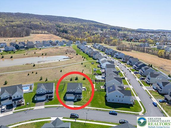 Welcome to 6494 Robin Road, nestled within the East Penn School District. This almost-new home boasts stunning mountain views from the back, with the backyard seamlessly extending into a peaceful meadow. The exterior showcases elegant stone accents and a welcoming covered front porch. Inside, you'll be greeted by high-end finishes including upgraded kitchen cabinetry with undercabinet lighting, stainless steel appliances, a custom backsplash, engineered wood floors and hardwood stairs. A convenient drop zone off the garage provides both style and practicality. Upstairs the spacious primary bedroom features a large walk-in closet and en suite bath including a luxurious shower with dual showerheads. Outdoor enthusiasts will love the 24' x 12' Trex deck, which leads down to a Techo Bloc patio complete with a saltwater hot tub and a double staircase (also Trex) for easy access. Also enjoy plenty of extra space in the partially finished basement, perfect for a game room, movie theater or home gym. The garage is fully painted with epoxy floors, adding an extra touch of polish. The Stone Hill Meadows community features sidewalks throughout and a walking trail for your enjoyment. Close to I-476 & I-78, and just minutes from Hamilton Crossings, Bear Creek Mountain Resort, Brookside Country Club, Lower Macungie Township Park and more.
