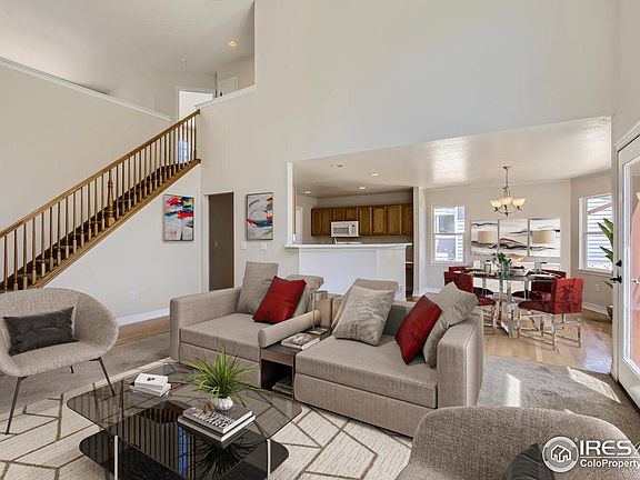 Attractive, well maintained three bedroom home backing to neighborhood trail with a main floor primary bedroom. As you pass the main foyer, you are greeted by the spacious open floor plan w/high ceilings and large picture windows offering an abundance of natural light. The main level features a formal living room flanked by the generously-sized eat-in kitchen surrounded by ample counter and cabinet space. Steps away is the convenient main floor primary suite that includes a 5-piece bath and large walk-in closet. A 1/2 bath and main level laundry/pantry room complete this level. Upstairs you'll find a roomy loft and two spacious bedrooms that share a full bath. Other features include a sizable backyard with mature landscaping and quick access to the community's walking path. A full, unfinished basement allows for endless possibilities to expand your living space. Enjoy this low maintenance home, with its great location to live the Colorado lifestyle!