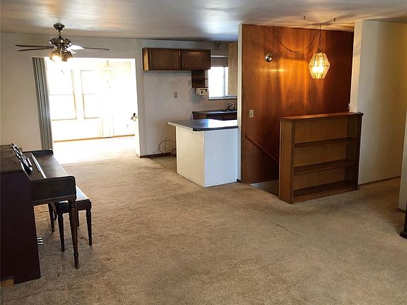 Fantastic family home w/room to update or expand. Hardwoods under carpet in LR, Hall & upper bedrooms. Formal Dining Area & open kitchen w/light oak cabinets. Full bath w/some new touches. Huge 400 SF main floor addition w/gas log fpl. Multipurpose room. Bsmt fin w/lg L shaped FR, bed w/egress window, full bath w/step up tub & large laundry/storage room. Original owner & well maintained. Hot water heat, roof new in last 10 years, water heater new in 2011, all new copper water lines in Bsmt for heat, French drain around perimeter. Double sliders from FR to north wood deck or south brick patio. Largest lot in neighborhood. Plenty of room to build a detached 2 or 3 car garage in back yard. No covenants in neighborhood, so RV or boat storage is also permitted. Mature trees in yard. Sprinkler front and back where needed. Easy to show on short notice. This home has been well loved over the years and is ready for another family to love it!
