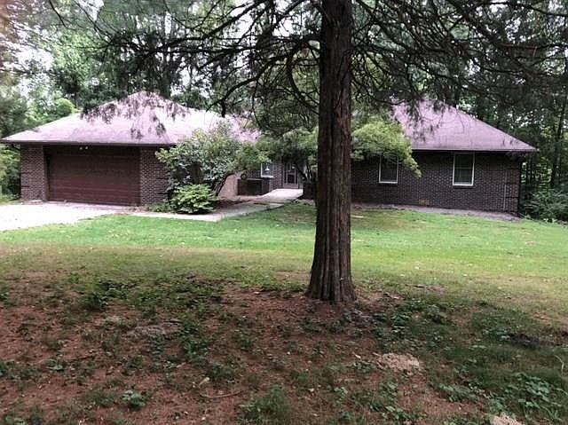 Very private in Crooked Creek Estate located on top of a hill surrounded by trees. Circular drive making it easy for friends to park. 3BR, 2BA. Entering the home at the front door immediately look down into the great room with fireplace touching the ceiling. Formal dining room off the kitchen and looking out onto one deck. The master suite and master bath with sunken bathtub and shower. Doors lead out to the second deck. The third deck is off the great room. Laundry room off Kt. The home is all brick sitting on 4.927 acres. Walk-out basement is unfinished with a fireplace and a workshop.
