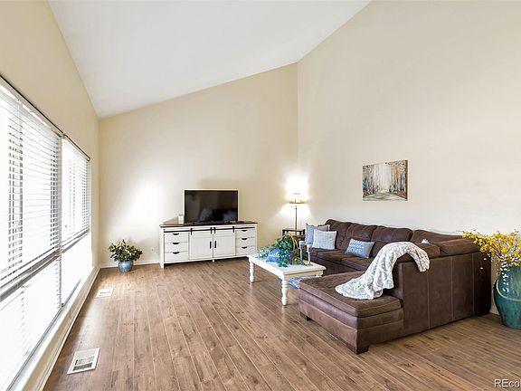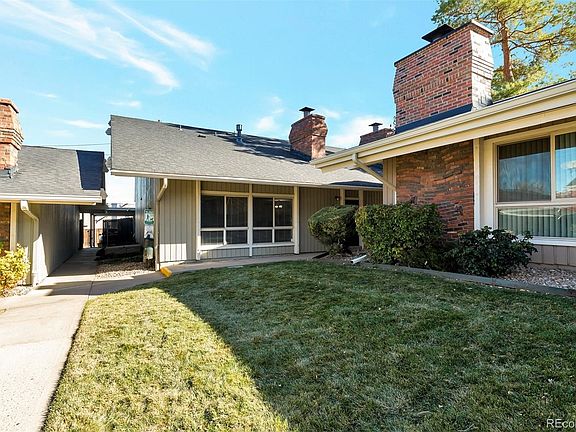 Welcome to Maintenance free living! Beautifully maintained condo that lives like a townhome, no one above you or below you! Prime Southmoor Park Denver location! You will fall in love with the modern Colorado style, new laminate wood flooring, soaring vaulted ceilings, an abundance of natural light pouring in from the large living room window and the skylight! All the space you need to live and entertain comfortably! The spacious living room includes a cozy wood burning fireplace perfect for the cold winter nights and it flows perfectly into your dining room! The kitchen complete with stainless steel appliances, eat in kitchen area and laundry closet! There is a mainfloor bedroom that can be utilized as a home office or sunroom with french doors from the kitchen and a sliding door onto the back courtyard and a separate 3/4 bath! Step out of the kitchen sliding doors onto your large, fully fenced courtyard and relax with a latte or glass of wine! Storage area in the courtyard! Head upstairs where your huge master retreat awaits you complete with your private 3/4 master bath! Additionally, another bedroom and full bath! All bedrooms complete with walk-in closets! New hot water heater in October 2021, newer furnace & A/C. Canyon Club is convenient to DTC , 1-25, I-225, grocery shopping, Starbucks, dining and fast food, close to light rail stations and a quick commute to Downtown Denver and DIA! Canyon Club amenities include fitness center, pool, clubhouse and indoor/outdoor game area! Monthly HOA payment includes water, trash, sewer, snow removal, roof, grounds maintenance!