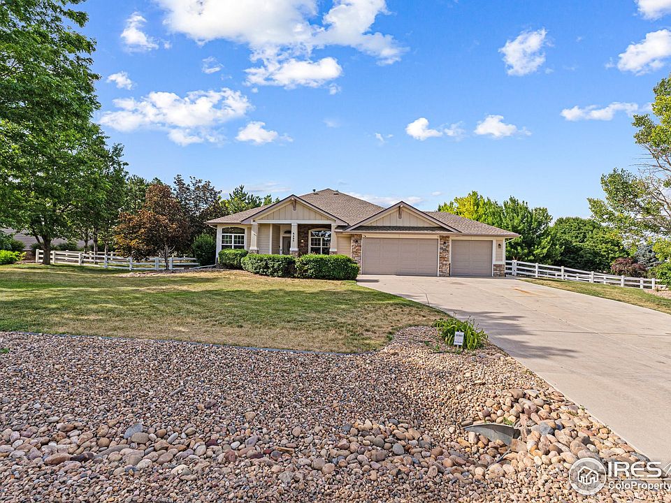 Welcome to your dream home in Eagle Shadow, offering over 5,500 finished square feet of thoughtfully designed living space. Inside this Ranch style gem, you'll find the flex room near the entry provides an ideal space for a home office or study. The warm and bright living room invites you into the kitchen where there are beautifully refinished wood floors, ample cabinet storage with updated hardware, and a large island that makes cooking and entertaining a breeze. This home offers soaring vaulted ceilings, and a spacious master suite on the main level. Two additional bedrooms on the main floor and one more in the finished basement offer the ultimate flexibility. The expansive finished basement is perfect for entertaining, with room for a home theater, game room, or gym. This home also features an accessory dwelling unit with its own private entrance, full kitchen, living room, formal dining area, and separate laundry space. The large bedroom suite with a walk-in closet and generously apportioned bathroom are ideal for multigenerational living, extended family, or guests. The unfinished basement offers the opportunity for additional living space or ample storage. The ADU is fully wheelchair accessible and seamlessly connected to the main home through a bright and open transitional space that flows seamlessly. Step outside to an oversized deck that's perfect for outdoor gatherings, barbecues, or simply enjoying the open skies. Additional highlights include a fully owned solar system, a brand new septic system, freshly enhanced landscaping, and an oversized 3-car garage. Located in the highly desirable Todd Creek community, with a peaceful rural feel and beautiful mountain views, this home also offers convenient access to Denver, Boulder, and DIA-providing serenity and connectivity. The home has been pre-inspected and is completely turn-key.