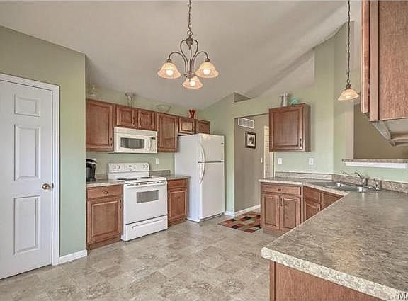 Beautiful 1900+ sqft former display home.The generously proportioned open floor plan home has been meticulously taken care of! You'll be impressed by the large great room with a marble surround gas fireplace. There are cathedral ceilings throughout the great room, dining room, kitchen & master bedroom. Tons of natural light streams in through the many windows! Dining room area with bay window and french doors leads to the freshly stained deck & huge fenced back yard. The kitchen has a substantial amount of upgraded, raised panel cabinetry & counter space. The same quality cabinetry is offered in both bathrooms. The luxury master bathroom has a deep garden tub, separate shower & double sink vanity. Nice sized walk in closet offered in the large master bedroom. The oversized 2 car garage(451 sqft) includes a spacious 13x10 bonus room (with HVAC) for additional living or storage space. Very high quality paint has been used throughout the home and the colors are gorgeous!