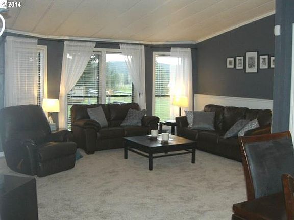 Updated 3bd.2ba,manuf.home, Den or family room, Open floor plan. Vaulted ceilings. Skylights. laundry room, Spacious kitchen. breakfast bar Tiled counters.Tiled Shower.New carpet.Formal dining.Pergo floors. Alarm system,Trek decking.Heat pump. 40x46 shop w/220. Outbldg. Lg.fenced back yard.Pasture. Aprx 2 miles from hwy.30.Approved FHa appraisal just completed. Septic & Home inspection completed.Priced below appraised value.