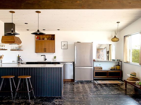 Discover your perfect retreat in this thoughtfully transformed 2-bedroom, 2-bathroom completely custom home, delivered fully furnished for immediate enjoyment. The sweeping open floor plan creates an inviting atmosphere for entertaining and daily living, flowing effortlessly from the kitchen through the dining and living spaces. Unwind on private patios accessible from each bedroom, or take advantage of the home's many features, including central heat & AC, laundry, a hot tub, and a BBQ, just to name a few. Beyond the impeccable design and craftsmanship, this home offers a serene sanctuary ideal for stargazing and a refreshing break from urban demands. Prepare to be impressed by the attention to detail throughout.