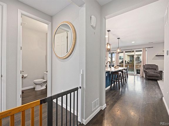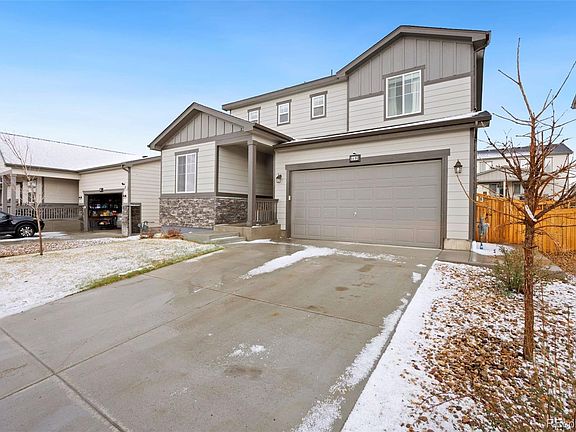 Welcome to this beautiful contemporary home in the highly desirable Frederick community. Located moments away from I-25, this home features a 2-car attached garage to keep your vehicles safe from the elements. Heading inside you'll be greeted by gorgeous luxury hardwood floors and a pleasing color scheme. To the left is the 1st of 4 bedrooms, and features carpet for coziness. 1 room over is a 1/2 bath for the convenience of guests and residents alike. Heading further in, you'll discover the fabulous eat-in-kitchen w/ custom cabinets, quartz countertops, stainless appliances (+ mini-fridge), kitchen island, and built-in shelves. You won't lack for space to store your cooking needs, and the pantry is a big plus. If you're looking for a more formal dining setting, then move from the breakfast bar to the dining area nearby, which also contains access to the patio. The open floor plan allows you to keep an eye on the the living room from both the dining room and kitchen. Featuring a gas fireplace, it's easy to imagine relaxing here after a long day. Carpet and natural lighting mixed w/ can lighting round off this comforting space. Upstairs is where you'll find the other 3 bedrooms. The master bedroom contains carpet, a ceiling fan, and an en-suite full bath w/ barn door. Dual sinks will make it easy for 2 to get ready for a day out, and you can also find a walk-in shower and closet here. Nearby are 2 more bedrooms, both w/ carpet for comfort. The laundry room is also nearby making chore day easy, + another full bath is yet another major convenience for all. When you're ready for some fresh air, you'll be happy to have the covered patio, which is perfect for entertaining friend and family. The grill located here is also included. There is plenty of room here to customize the space to your liking. W/ shopping, entertainment, restaurants, trails, parks, and quality schools, there's nothing missing from this pristine home except for you. Schedule your showing today!
