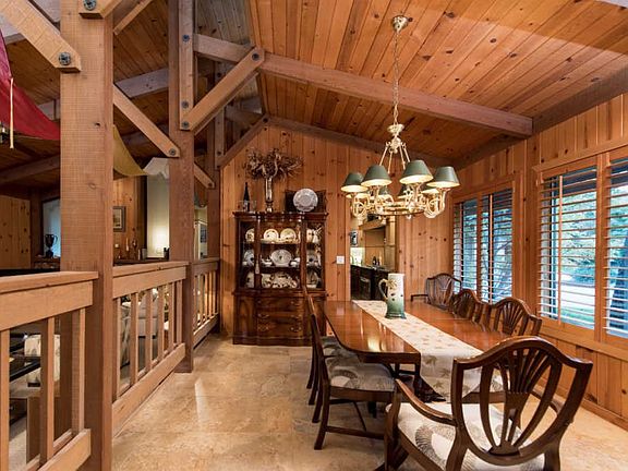Absolutely exquisite one owner home - first-time on the market. No attention to detail has been spared. Bi-level design allows views over the sunken great room and out to the backyard. Natural light is provided by large windows and skylights. The kitchen, great room, and dining room feature post/high open beam ceilings, T&G wood and gleaming maple cabinets. Gold ore quartz rock is the highlight of the great room fireplace. Porcelain travertine tile flows throughout the upper level, entry, dining, kitchen, breakfast and den areas. The bedroom wing is private off the entry and there is a 4th bedroom/office off of the garage, complete with a 1/2 bath. The backyard, patio and pool and waterfall are breathtaking and perfectly set up for entertaining. Pictures really do not do this home justice. It is a one-of-a-kind home that is functional as well as beautiful.