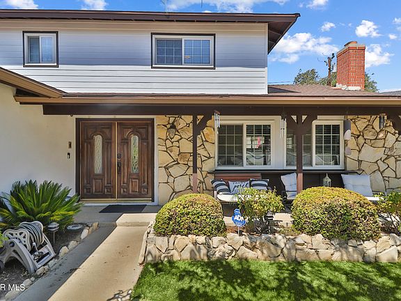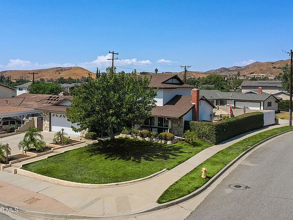 Gorgeous pool home on a corner lot! This home welcomes you with a light and bright open layout. As you enter, the floor plan leads to the living room that has a stone fireplace, bamboo engineered flooring and lots of windows that let in ample natural light. The family room is open to the kitchen and a slider door leading to the large, private backyard with a beautiful pool, built in gas fireplace, and a custom outdoor kitchen with a built-in bbq and mini refrigerator. This home has five bedrooms (one downstairs) and two and a half bathrooms. Updated kitchen, stainless steel appliances, breakfast bar and clean fresh paint throughout the entire house. Some more notable upgrades include recess lighting, insulation, newer roof and newer painted exterior for a great curb appeal. There is ample storage in the garage with cabinets throughout. The convenience of having the 118 freeway minutes away and close proximity to the San Fernando Valley makes this an ideal location. This fabulous home is waiting to be yours!