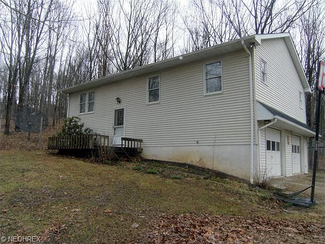 The sun room in this house doubles an observation deck for the wildlife sanctuary that surrounds this 21+ acre property. Nestled in the woods, this split entry 1288 sq. ft. home built in 1987 has 2 br and 2 full baths on the main living area and a 3rd br and half bath on the lower level. The main level includes the living room, the kitchen, and a large laundry room. The kitchen has lots of cabinets and counter space and includes an island for extra work space. The sun room features floor to ceiling windows and French doors which allows sunlight to permeate the kitchen and provide amazing panoramic views of the wooded county-side. The full walkout basement is home to an oversized two car garage with garage door openers, a workshop area with storage shelves and a second family room The heat pump provides an efficient heating and whole house air conditioning system and the vinyl siding is almost maintenance free. In addition to the house this property includes a 24x40 storage barn with concrete floor and an attached covered area that provides protection for the animals from the weather. The previous owner built a large 10' high fenced-in area for raising deer which requires a permit from the ODNR. The acreage is mostly wooded.