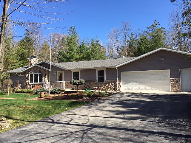 Peaceful and serene for this meticulously maintained ranch home at the edge of town. Lovely wooded lot with walking trails, Gazebo and professional landscaped. Open concept designed living area with vaulted ceiling. Living room with stone surround wood burning fireplace, kitchen has a center island and pantry with a bright and open dining area. The master bedroom has a private bath with walk-in shower. 3 car garage with one side 2 car and a separate 1 car side, perfect for workshop and/or storage. This home is more than move-in ready--it's perfect